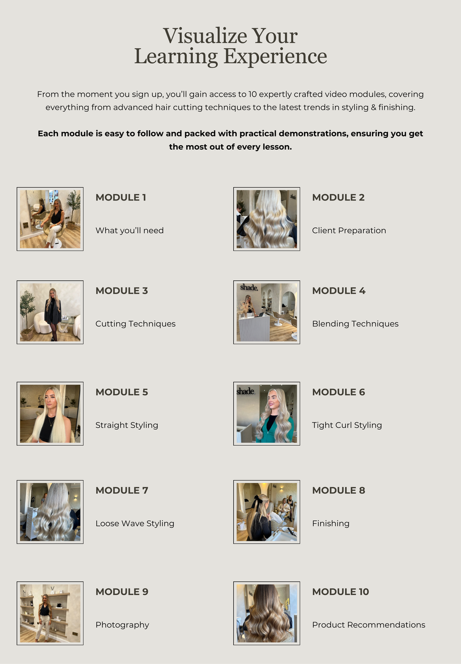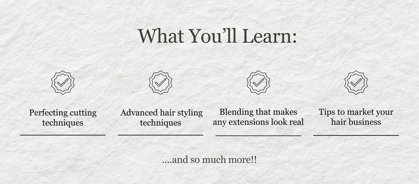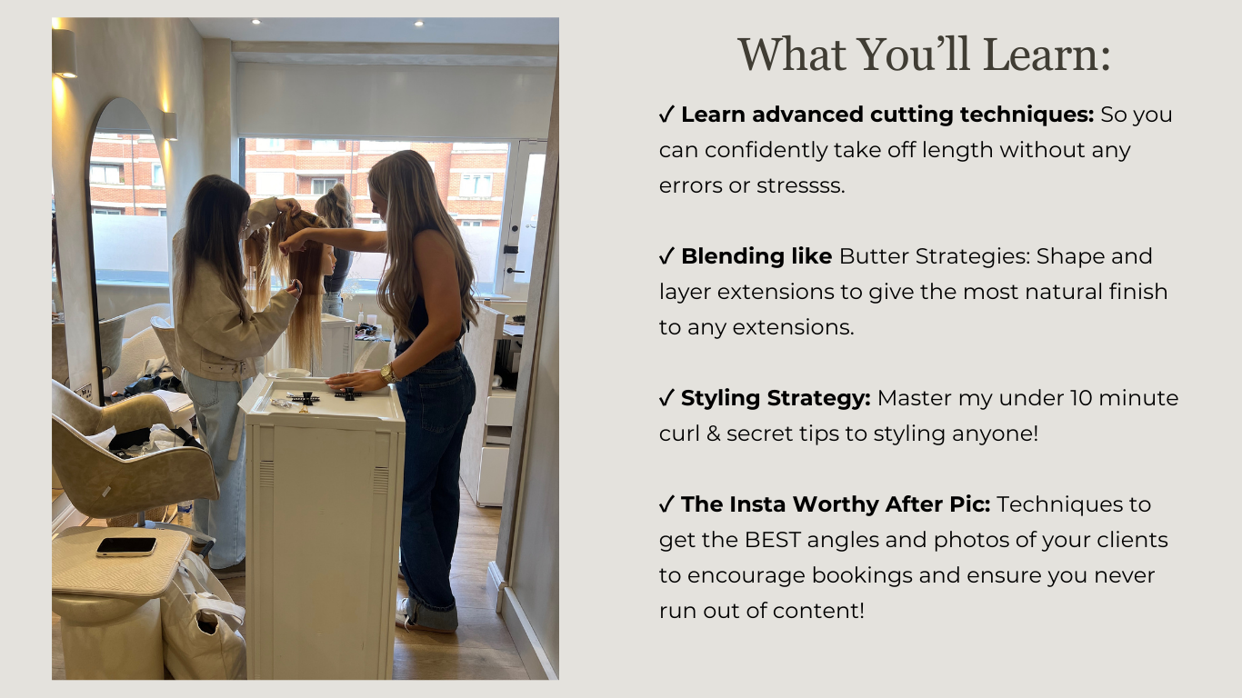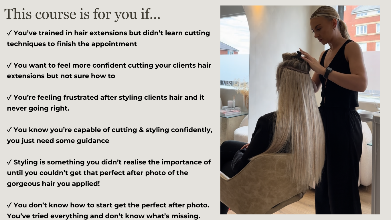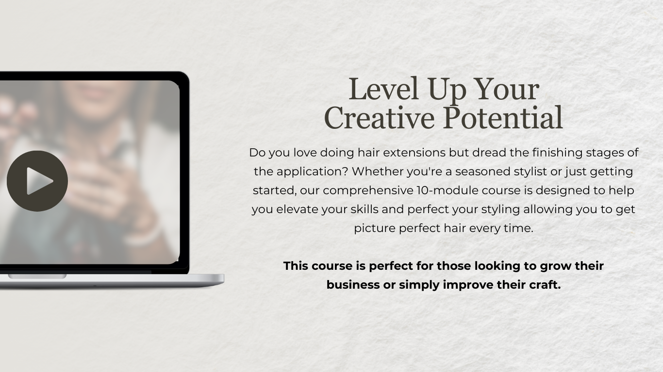Hi there! I'm a passionate entrepreneur and educator dedicated to guiding others towards their own success. With coming into the hair extension industry with ZERO previous experience, I know how overwhelming it can be, which is why I have created this course for you to not only master your skill, but also give you invaluable information on how to grow your business.
